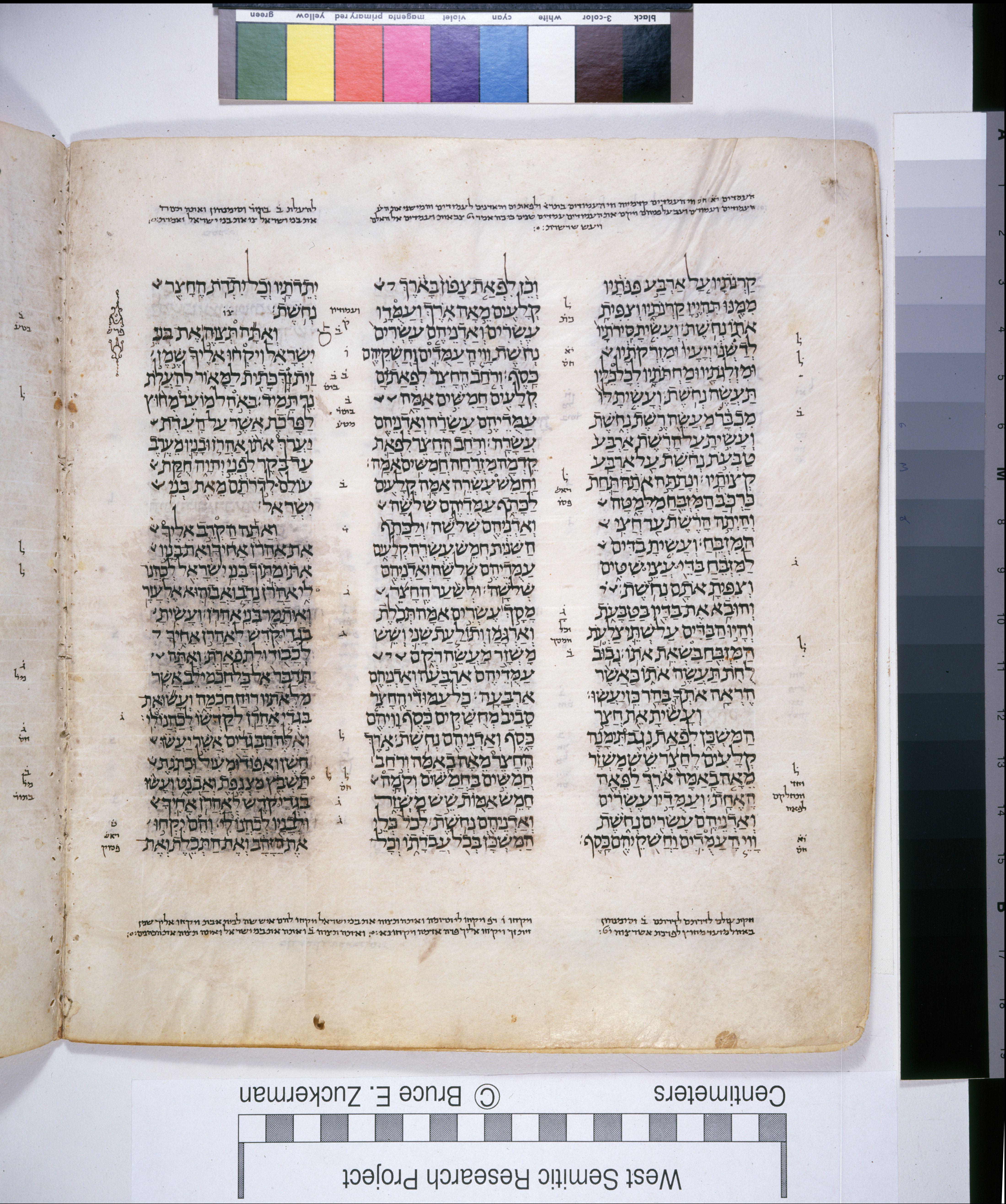 | וַחֲמֵ֨שׁ עֶשְׂרֵ֥ה אַמָּ֛ה קְלָעִ֖ים לַכָּתֵ֑ף עַמֻּדֵיהֶ֣ם שְׁלֹשָׁ֔ה וְאַדְנֵיהֶ֖ם שְׁלֹשָֽׁה׃ |