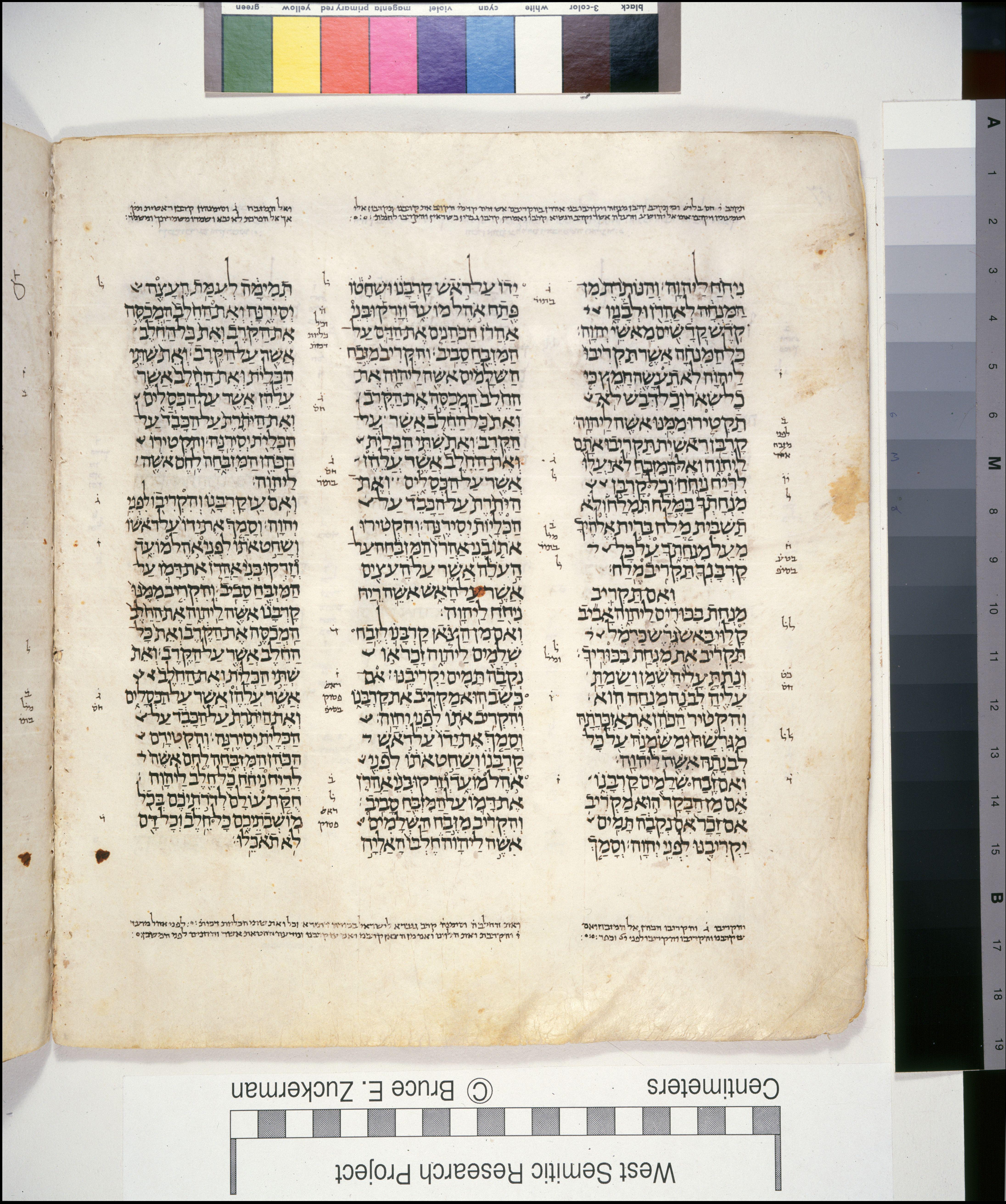 | וְסָמַ֤ךְ יָדוֹ֙ עַל־רֹ֣אשׁ קָרְבָּנ֔וֹ וּשְׁחָט֕וֹ פֶּ֖תַח אֹ֣הֶל מוֹעֵ֑ד וְזָרְק֡וּ בְּנֵי֩ אַהֲרֹ֨ן הַכֹּהֲנִ֧ים אֶת־הַדָּ֛ם עַל־הַמִּזְבֵּ֖חַ סָבִֽיב׃ |